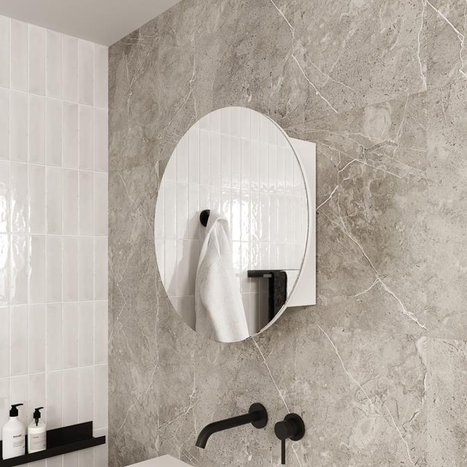 Enhance your bathroom with the stylish and functional Round Mirror Cabinet. Featuring a 600mm round mirror paired with a 470x530mm cabinet, this unit blends form and function beautifully. Crafted from durable MDF and finished in a smooth flat white paint, this unit offers a clean, high-quality look.