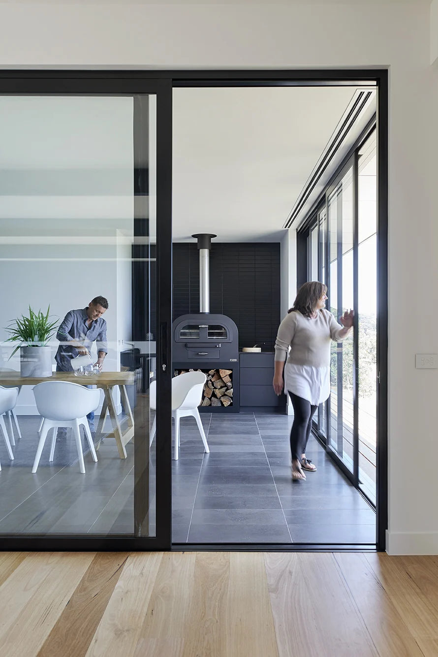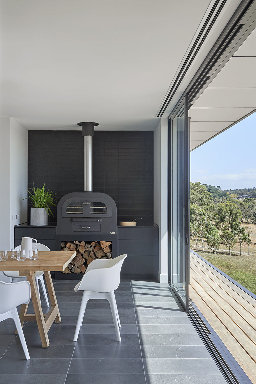 To seamlessly bring the outdoors in, Stegbar Alumiere Stacking Doors were specified, allowing Steve and Donna to take advantage of the alfresco space all year round. “In winter, we can keep the doors closed and still feel connected to the outside due to the large panes of glass and unobstructed views. During the warmer months, we can completely open them up and create a cohesive transition from inside out,” says Mr Bright.