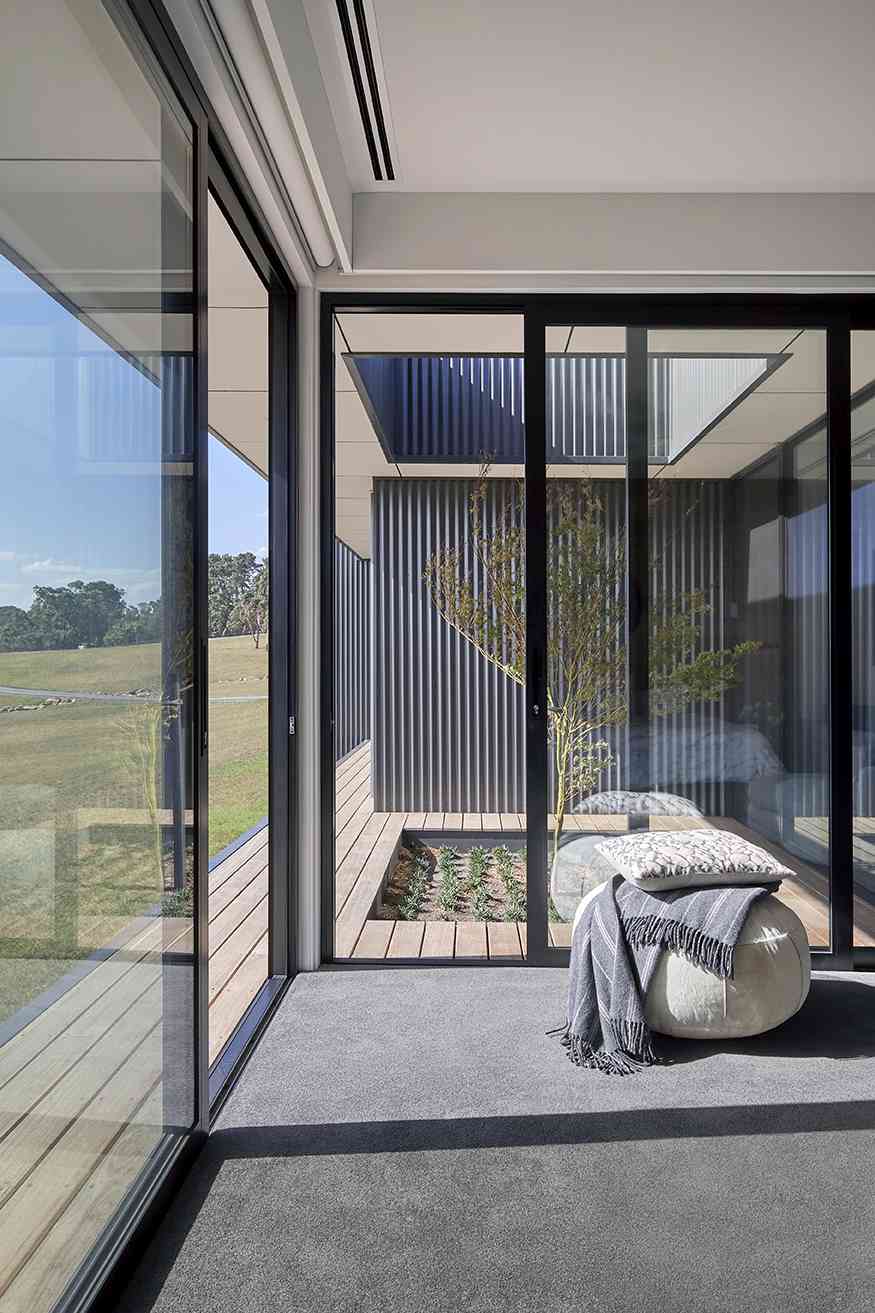 Built by owners Steve and Donna Bright from construction company Excelcon, with Graham Jones Design, the brief was to frame the home and provide capitalise on the beautiful rural views. “We wanted to incorporate floor-to-ceiling windows that could run seamlessly along the length of the house,” says Mr Bright.