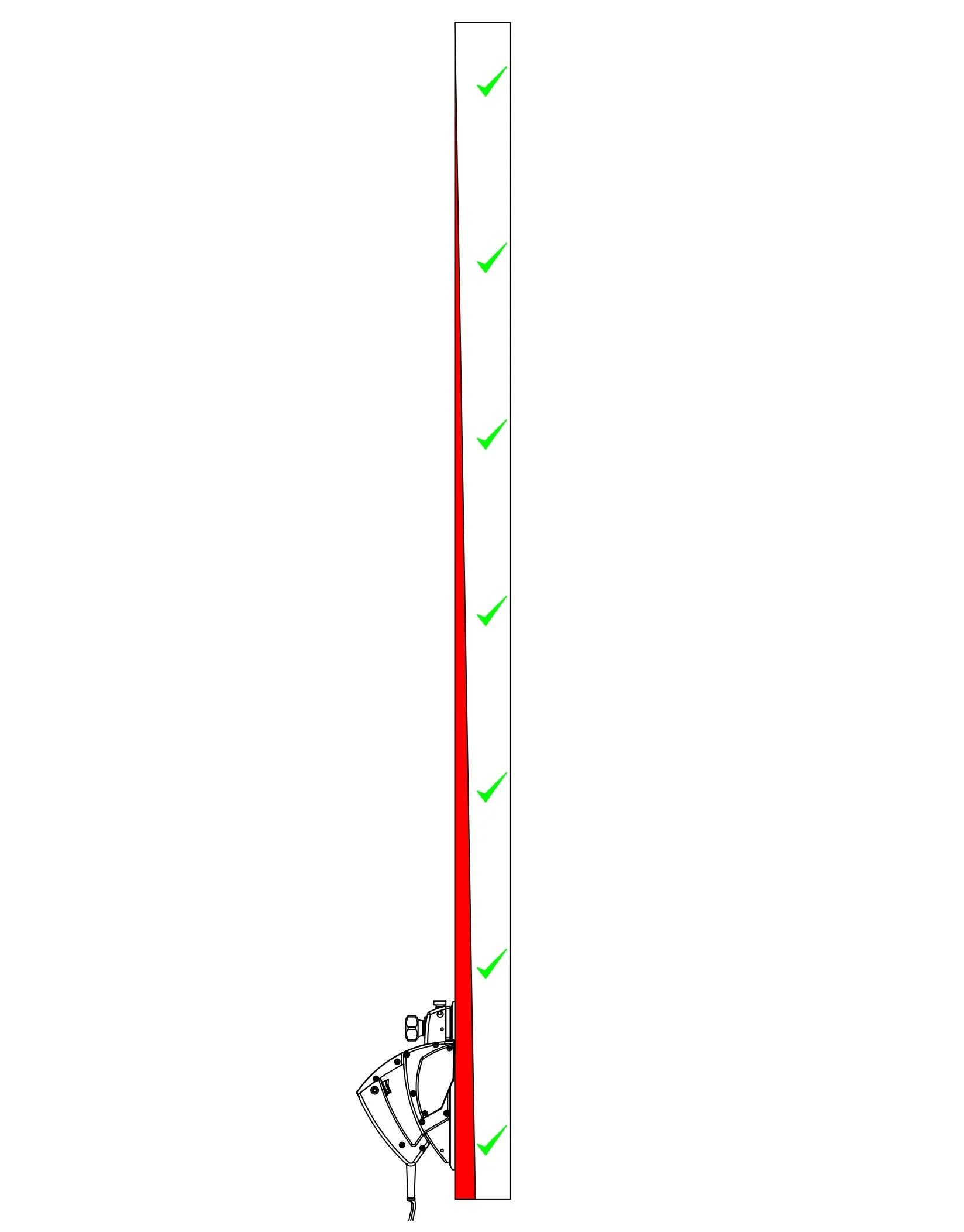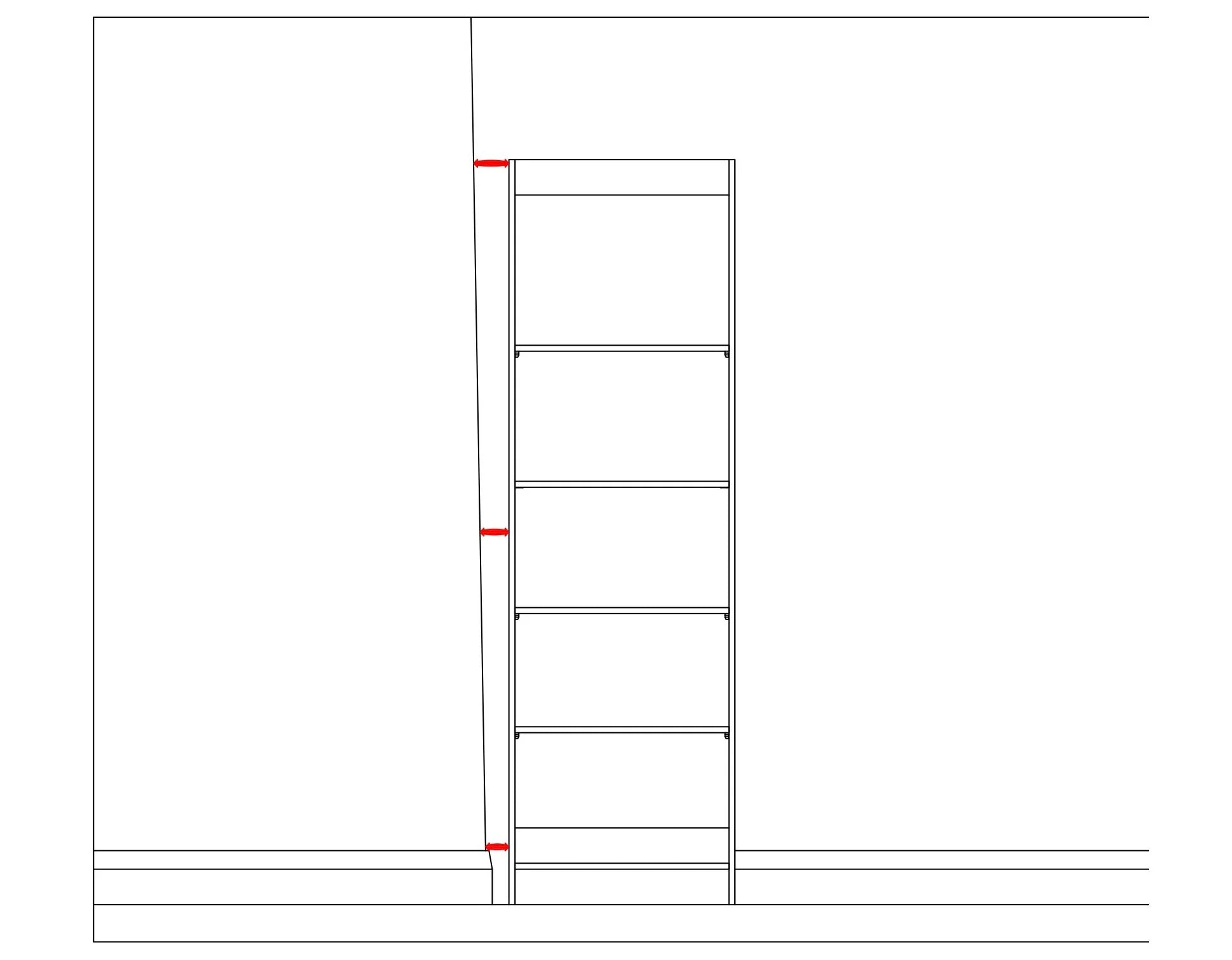 Measure the distance between the wall and the tower in 3 spots - the top, middle and bottom as shown in the diagram below.