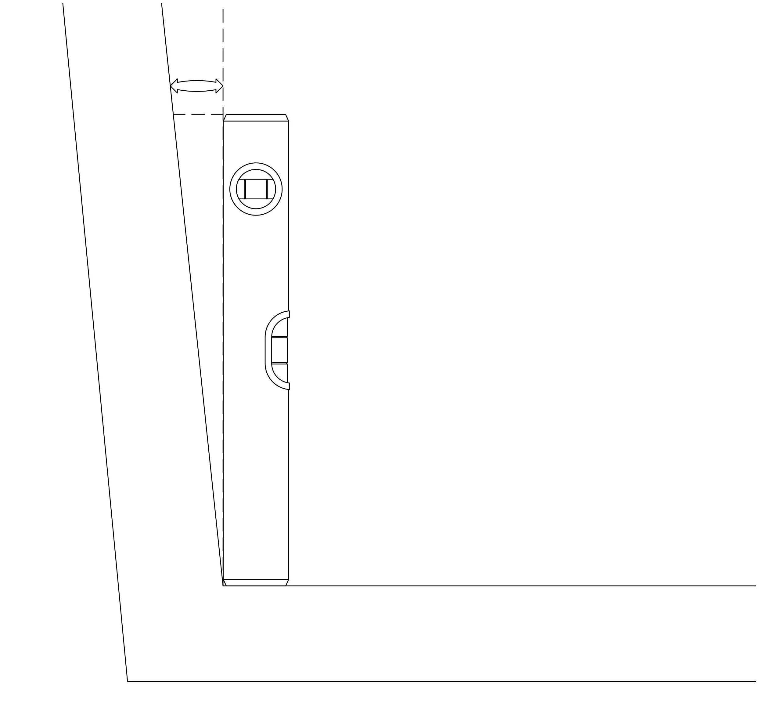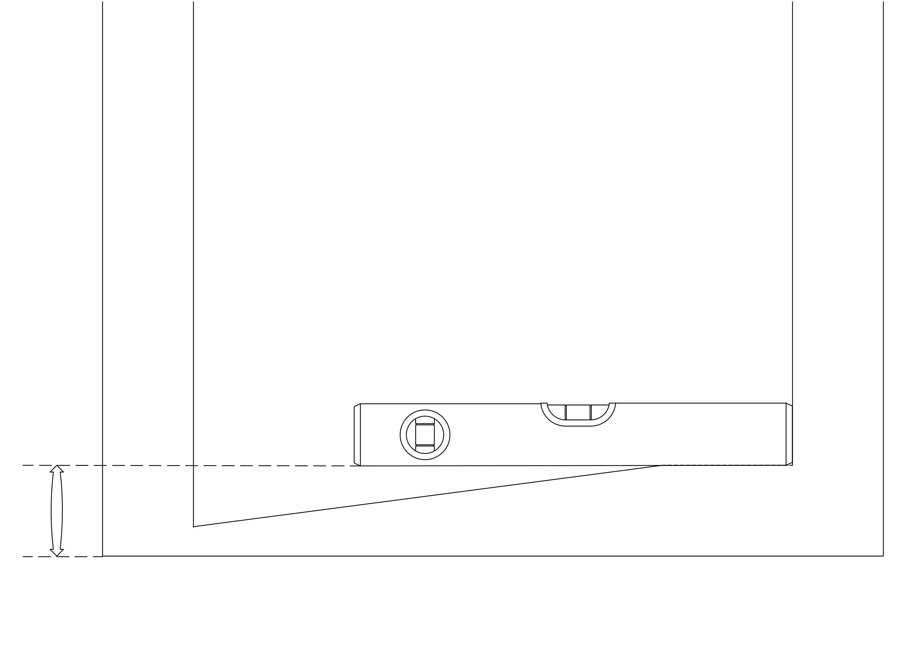 To check this, place your spirit level on the floor, and if it is out of plumb, measure the distance between the floor and the level. Like the wall measurement, this can be just a few millimetres or quite a large gap.