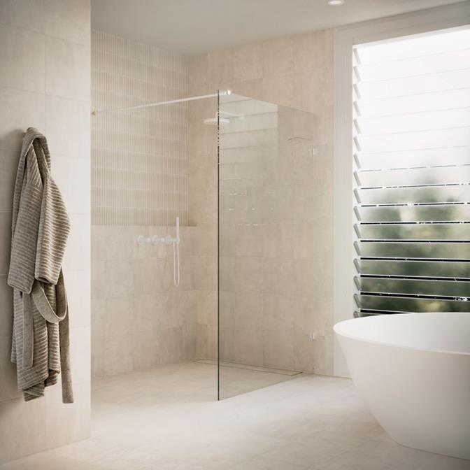 Discover elegance with Stegbar's DIY Frameless Clip Fixed Shower Screen, perfect for modern bathrooms. It mirrors the quality of our custom-made range, offering seven hardware finishes that complement any style. Elevate your bathroom effortlessly.