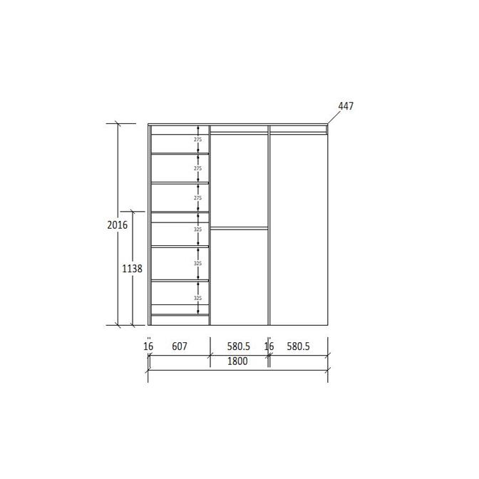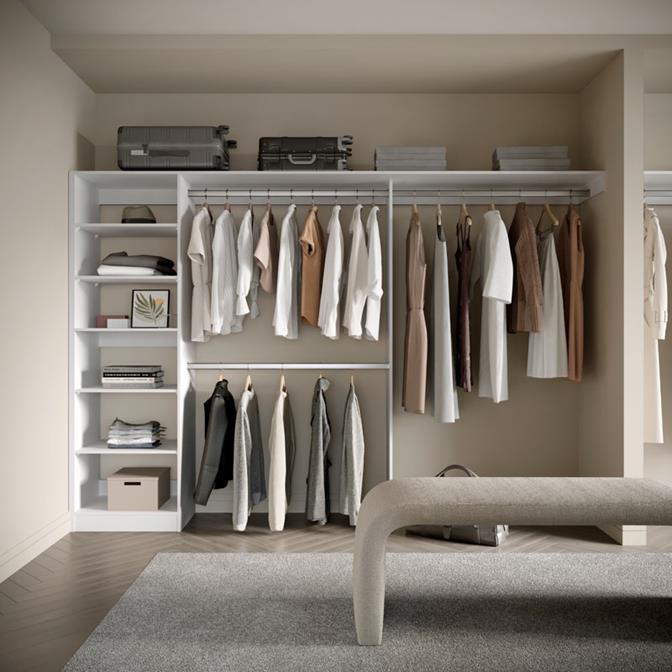 Enhance your organisation with the Galleria Wardrobe 4.0. Featuring adjustable shelves and both long and short hanging space, it accommodates various clothing items, from jackets and shirts to long dresses.