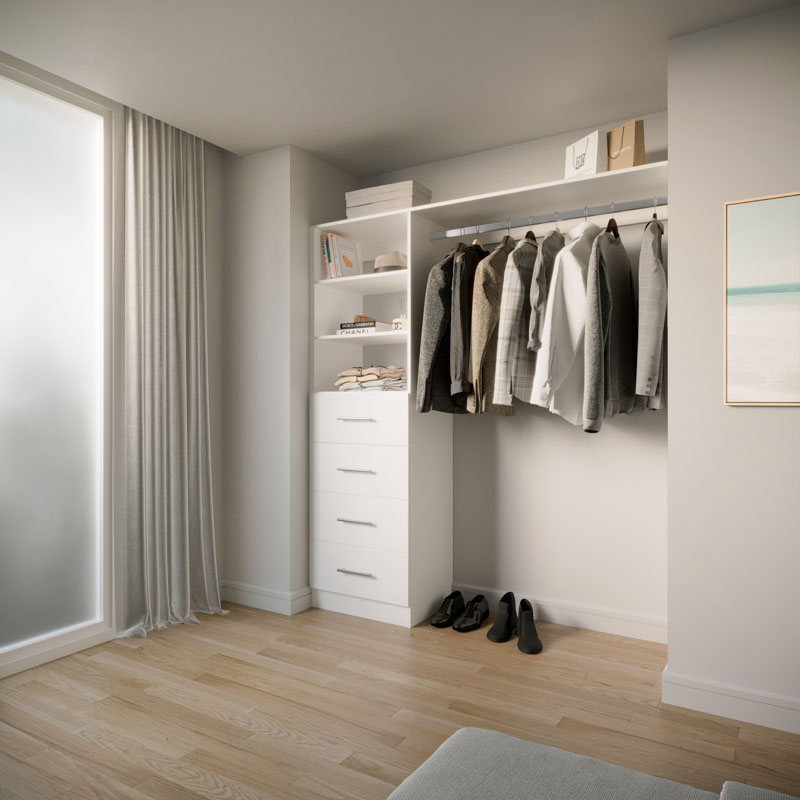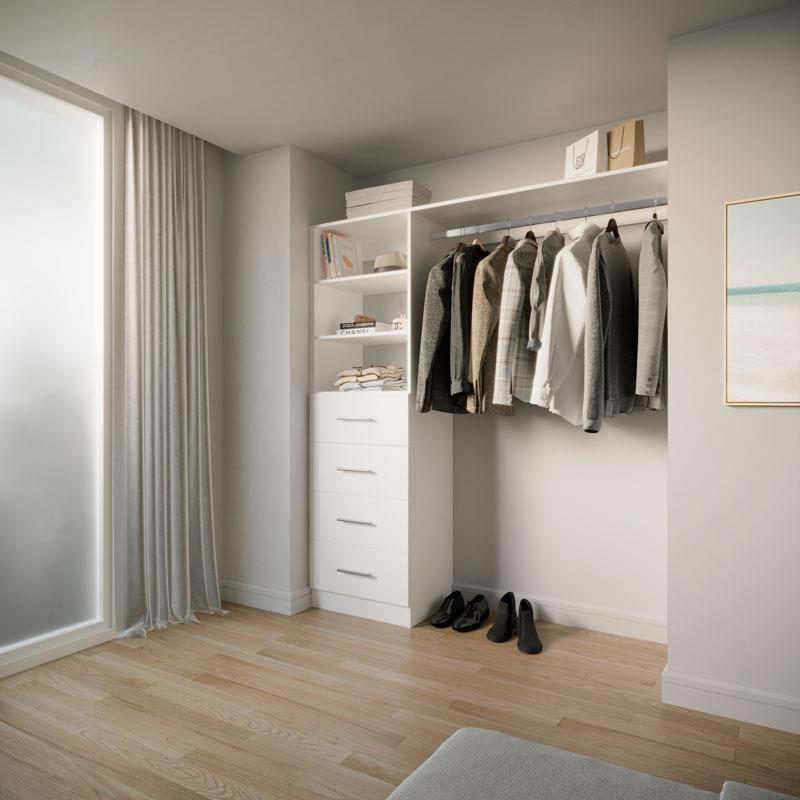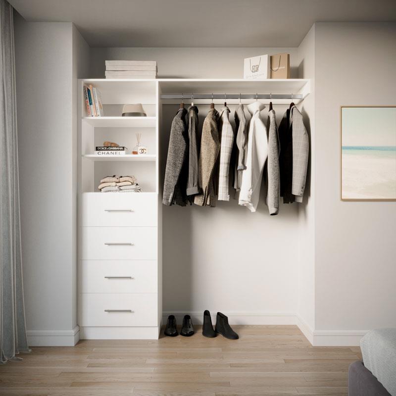 Choose from four on-trend colours and nine handle options. The reversible design adapts seamlessly to your space. With four drawers, adjustable shelves, and spacious long hanging, it's perfect for your long dresses, suits and more. Elevate your storage with Galleria BIR4.9.